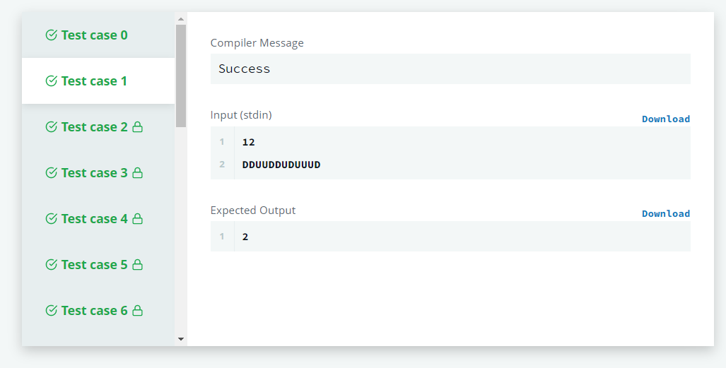 총입력된 string의 수만큼 for문을 돌립니다. 이때 string 입력이 U이면 count 를 +1 하고 D이면 count를 -1 하도록 할 경우 sea level보다 낮아진다는 것은 count의 값이 0보다 작아진다는 것을 의미합니다.