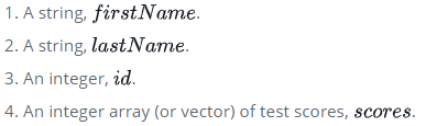 Student(string firstName, string lastName, int id, vector<int> scores):Person(firstName, lastName, id){
