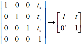 이를 3차원으로 확장해서 이동변환에 관해서 일반화하면 다음과 같은 형태로 나타낼 수 있다.