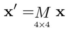 로 나타낼 수 있는데, 이렇게 지저분한(?)식을 Homogeneous 좌표계로 표현하면 다음과 같이 간단한 행렬 식의 형태로 나타낼 수 있다.