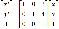 행렬 M에 대해서 좀더 자세히 풀어쓰면 이동변환의 경우
